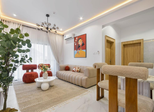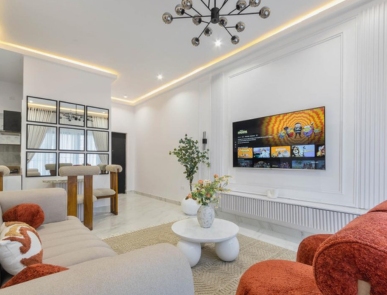 Hazel House is a stylish new 2-bedroom apartment offering comfort and convenience at just N100,000 per night. Perfectly equipped for a seamless stay, it features en-suite rooms with private bathrooms, a guest restroom, and modern amenities such as air conditioning, smart TVs, and a smart lock for added security.